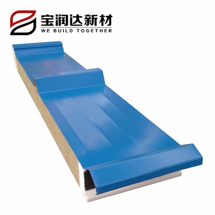 聚氨酯屋面板,現(xiàn)場無須二次加工,不影響其它工序的正常進行,而且大大縮短板材的安裝周期,巖棉夾芯板的日平均安裝面積達600 ~ 800m2 |